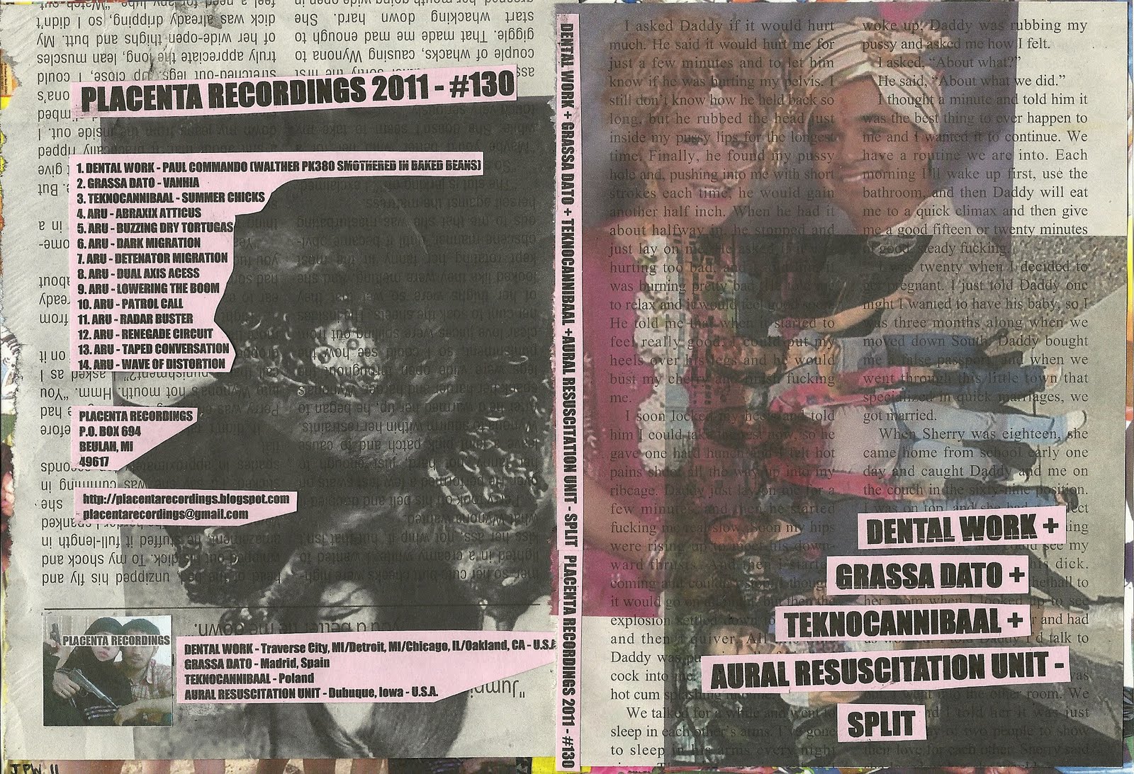Available Now On Placenta Recordings: UMBRELLAS IN THE RAIN, HIS BLOOD IN THE GUTTER, DENTAL WORK, AND OUBLIETTE - "FUROR UTERINUS" (4 WAY SPLIT)!!!!!! First Pressing is limited to 100 copies! Order Your Copy Today, Placenta only has 25 up for grabs, the rest will be shipped to the artists.....