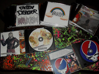Instruments used: Knives/Hatchets, Bones, AM Radios, Fruit (Buddah's Paw), Hacksaw, Fans, Duct Tape, Percussion De Grizelda (DIY instrument I made), Boss DD-6 Delay, Boss Digital Delay DD-3 Pedal, Contact Mics, Ion TT USB Turntables, Boss Metal Zone MT-2 Pedal, Super NES, Found Sounds, Micro Casette Player, Peavy 4 String Bass Guitar, Blow Up Dolls, Pre-Teen Clothing, Bandanas, Raincoats, Mexican Frankenstain Masks, First Act Microphones, Magix Audio Studio 10 Deluxe, Magix MIDI 10, FC Twin,Boss Dr. Rythm DR-3 Drum Machine, Whistles, Nintendo GameBoy Pocket, Mario Paint, Chop Sticks, Webbed Car Parts, Combat Boots, Loving Lamb, Old Video Tapes, Cardboard, A Box Of Cereal, Toshiba Satellite Laptop, Behringer Eurorack MX 602A, Magix 15, Nintendo 64, PS2, Dell Pentium 4 Desktop CPU, Oujia Board, A Pair Of Little Girls Shoes, Sony PS-LX250H Turntable, Dennon DRA-275R Amp, Dennon DCD-695, Tredex TX-3000 DVD Player, Old Movies, Records, Samples, Voices, Foreign Language Books On Tape, Video Games, A Switchblade, Super Mario Effects Keychain, Wigs, Duck Calls, Mini-skirts, Weird Toys from the 80's and 90's, Yamaha Portasound PCS-500 Keyboard, Casio CTK-519 Keyboard, Paint Markers, Crate BX-15 Amp, Peavy KB 15 Amp,Peavy 8 Channel Mixer, Famitracker, Atomix, Pornography, Flarp! Noise Putty, My Genetalia, A Coffee Grinder, 4 Piece Dental Pick And Hook Set, Kittendorf Piezo Transducers, Kittendorf Square, Cotton Candy Perfume, EVERYTHING IS AN INSTRUMENT!