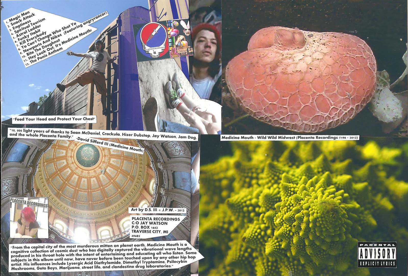 The music is a rare blend of musique concrete, extreme psychedelia, anxiety, experimental, harsh noise, tape manipulations, glitch, grindcore, turntable-ism, sound collage, found sounds, avant-garde, and outsider trash art.